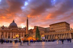 St Peter's Basilica and Christmas TreeIn front of St Peters cathedral in Vatican City (see image above), there is a huge Christmas tree put up and many families buy tickets to get entrance to the festive midnight-mass which is held by the Pope.