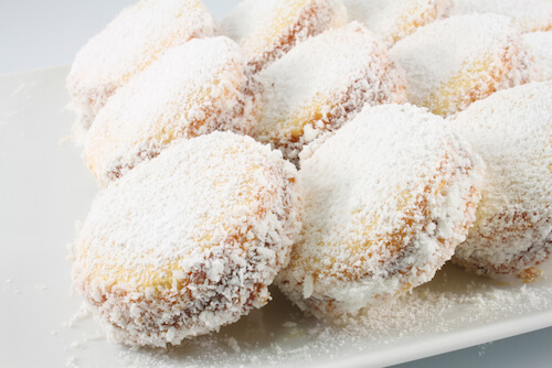 AlfajoresHere you see the cookies dusted with shredded coconut flakes.