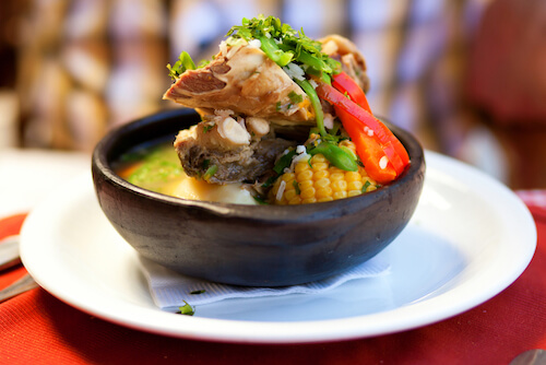 Cazuela is a typical homemade stew made with beef or chicken or lamb and also includes potatoes, pumpkin and corn on the cob.