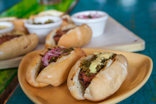 The name of this typical Chilean snack comes from the two Spanish words chorizo and pan (crusty bread).