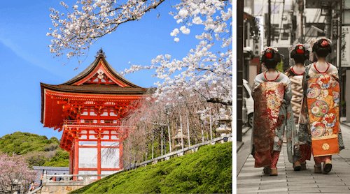Japanese celebrate many festivals among them the most popular in springtime to celebrate the spring flower season and the cherry blossom. The Gion Matsuri in July is celebrated in Kyoto when the Japanese people dress in traditional kimonos.