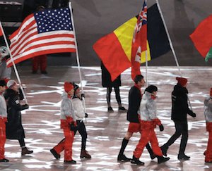 During the Parade of Nations, all athletes walk into the stadium with their national team under the county’s flag. The Russian delegation, however, walked this time under the Olympic flag as 47 athletes and coaches of the Russian team were banned from the winter games. Due to a doping scandal, the Russian athletes were not allowed to carry their Russian flag.The teams of South Korea and North Korea were cheerfully welcomed when they entered the stadium together under the Korean unification flag. The team from the USA came in dancing to the music of the Korean pop song ‘Gangnam Style’.