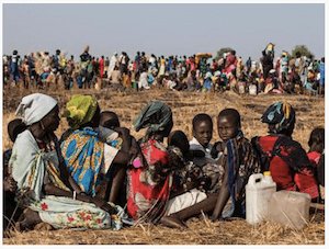 There is fighting in South Sudan between different political groups. This has badly disrupted farming because many people fled their homeland and their fields to seek refuge from the violence. © dpa news for kids - edited