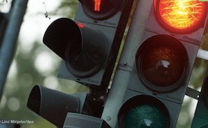 And the shorter the time, cars, trucks or buses have to wait at traffic lights, the less traffic will pollute our environment. Isn't this a clever idea? © edited source: dpa international