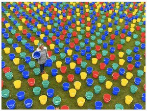 © dpaWhat is coming out of the water in this photo? There are two huge arms and hands that seem to be holding up an old house. What a strange sight! The giant hands have been designed by an artist named Lorenzo Quinn. He is using his art to tell people that they should take care of the environment.