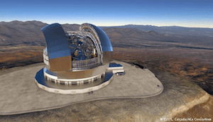 The telescope has a main mirror that will measure some 39 meters (127ft.) across. Thus it will be about five times larger than the biggest telescopes that are currently in use. The main mirror that is made of 800 mirror sections, will be protected by a 80m (262ft.) high dome, you can see this in the image above.