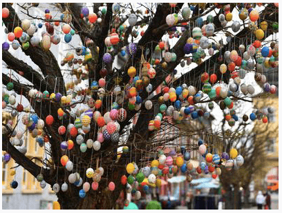 © dpaThis tree looks a bit unusual. Instead of leaves, it has thousands of colourful eggs. This is the Easter egg tree in a German town called Saalfeld. Germany is a country in western Europe.