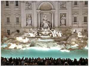 People who visit Rome throw money into the fountain every day. They believe this will bring them good luck and happiness and some hope they might return to this beautiful city.