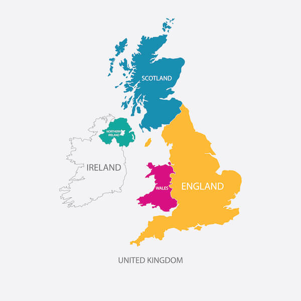 The UK consists of four countries: England, Scotland, Wales and Northern Ireland.